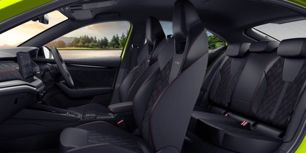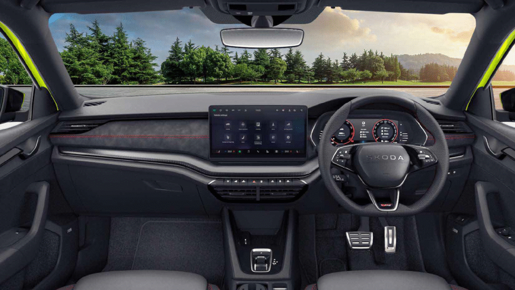 Step inside the Škoda Octavia RS 2025, and you’re welcomed into a space where premium comfort meets pure performance. The cabin has been meticulously crafted to immerse the driver in luxury while maintaining an unmistakably sporty atmosphere.